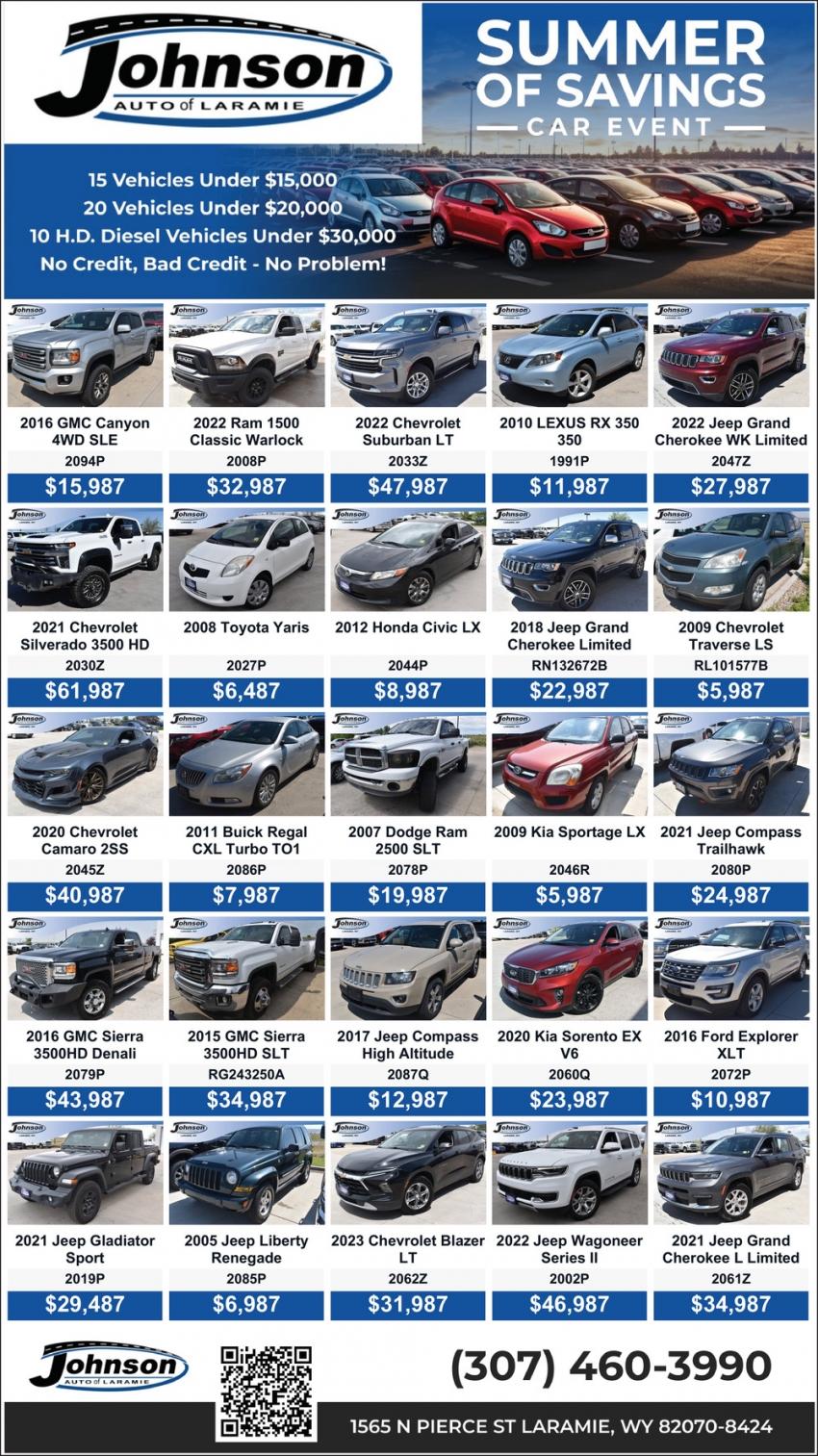 Jul 26, 2024. Johnson Auto of Laramie Auto Dealers Ads from Laramie Boomerang
