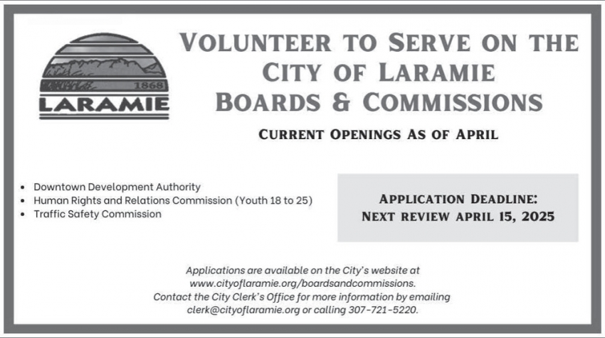 Apr 02, 2025. City of Laramie Government Ads from Laramie Boomerang