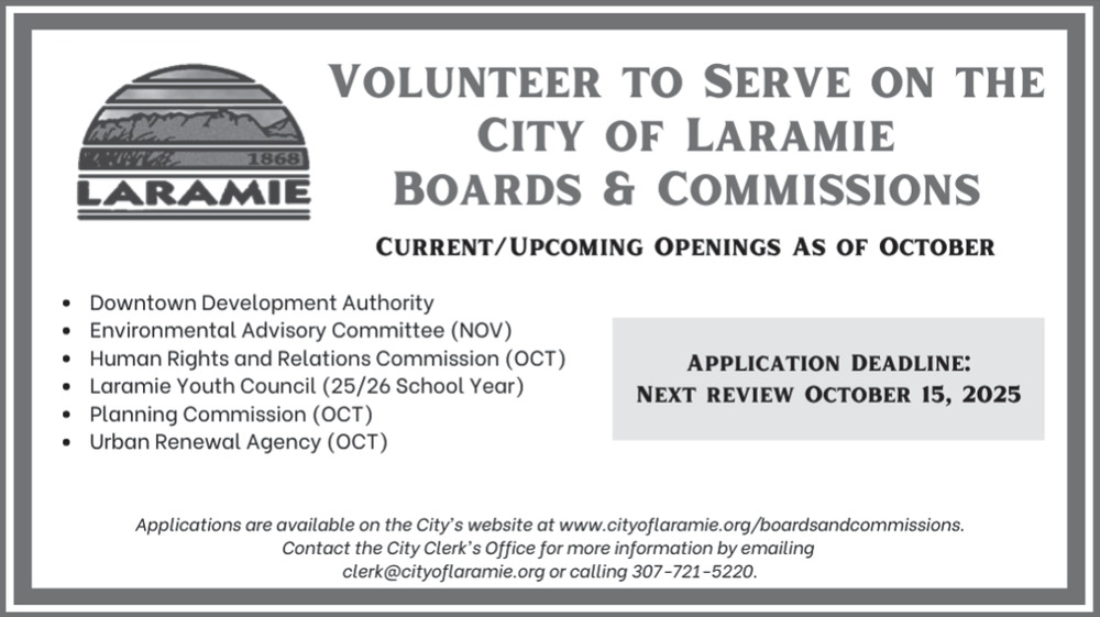 Oct 01, 2025. City of Laramie Government Ads from Laramie Boomerang