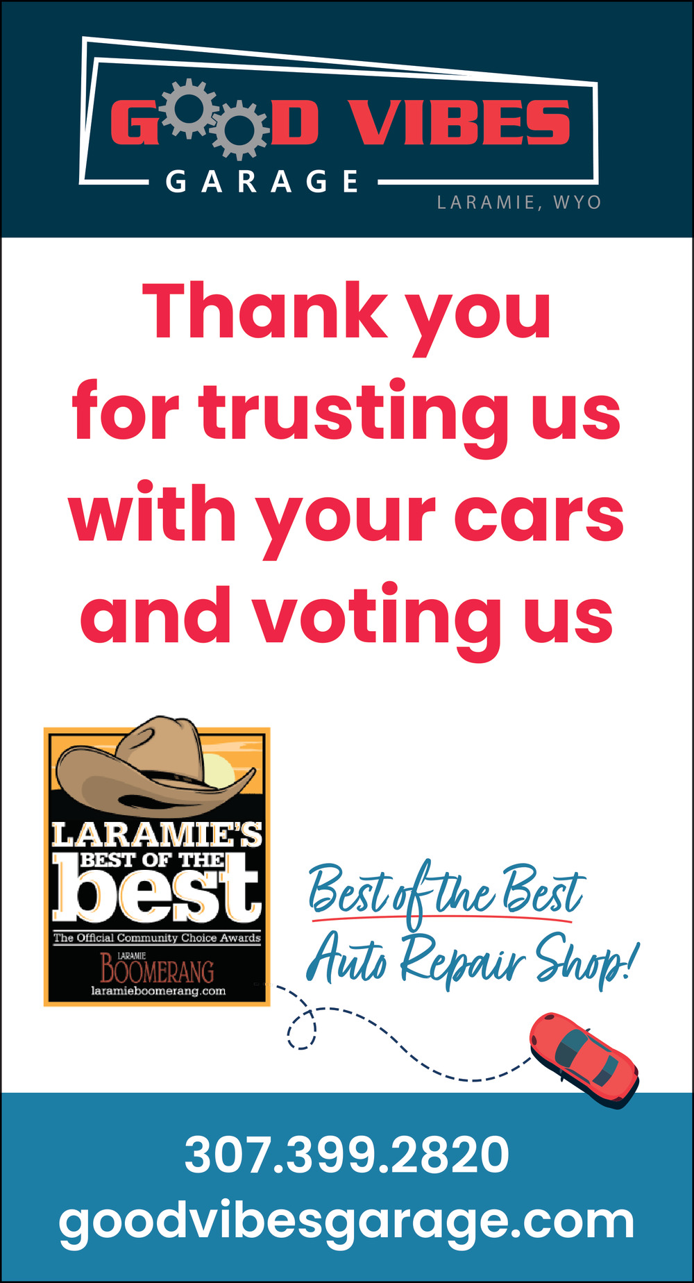 Thank You for Trusting Us with Your Cars and Voting Us