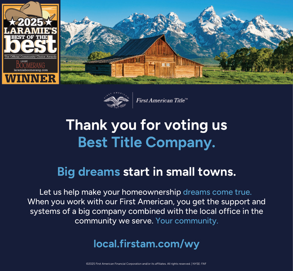 Oct 10, 2025. First American Title Finance & Insurance Ads from Laramie Boomerang