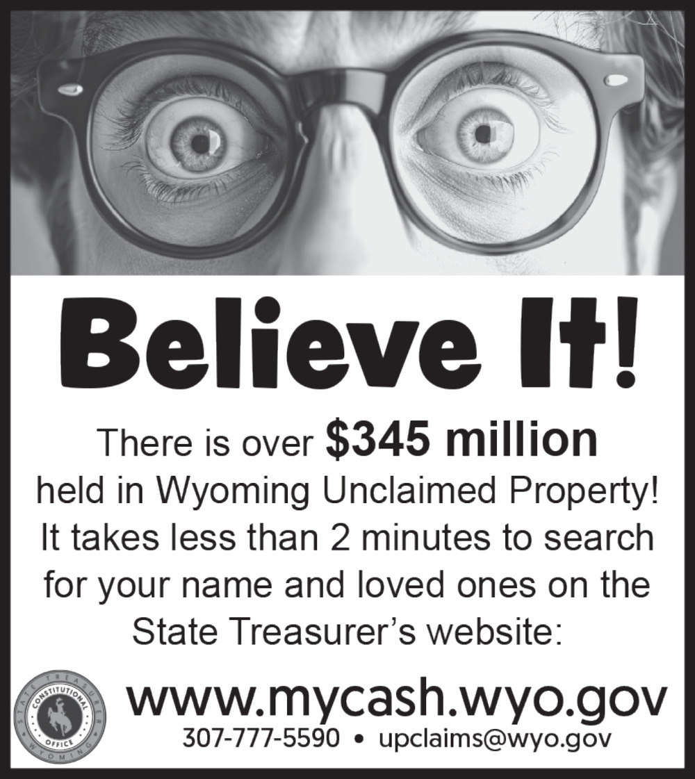 Oct 15, 2025. Wyoming State Treasurer Government Ads from Laramie Boomerang