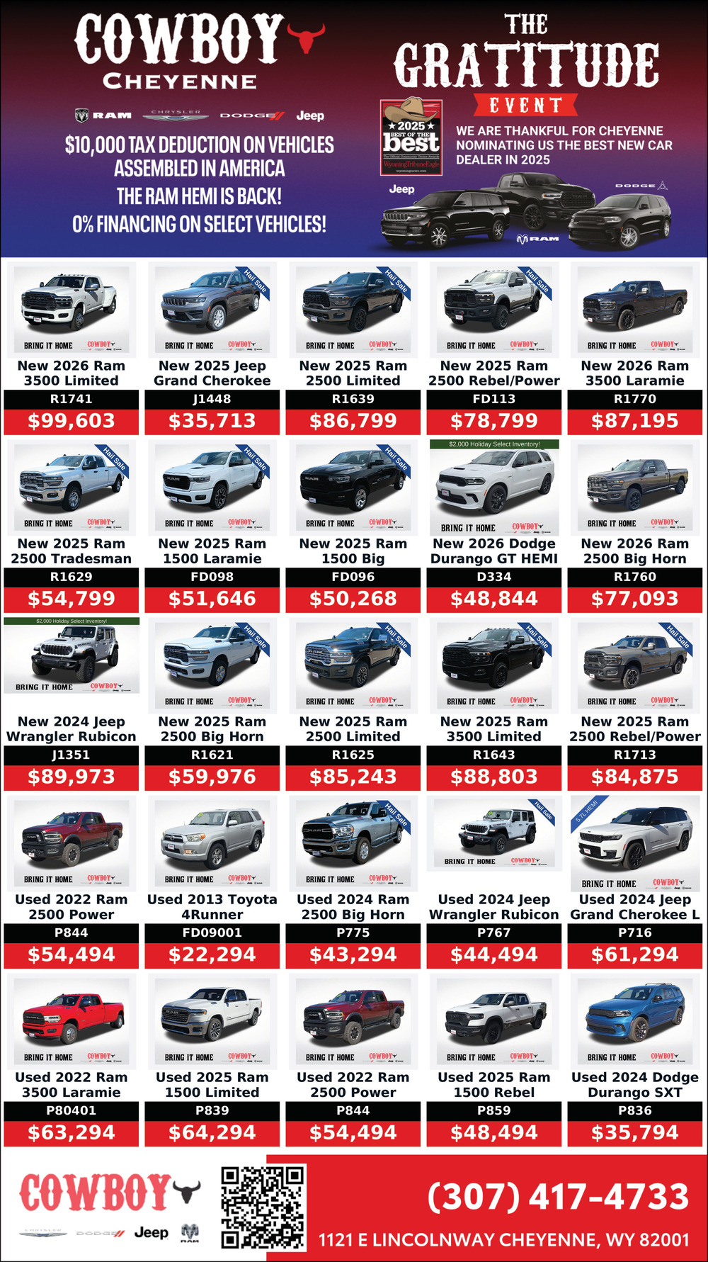 Ads for Cowboy Chrysler Dodge in Cheyenne, WY