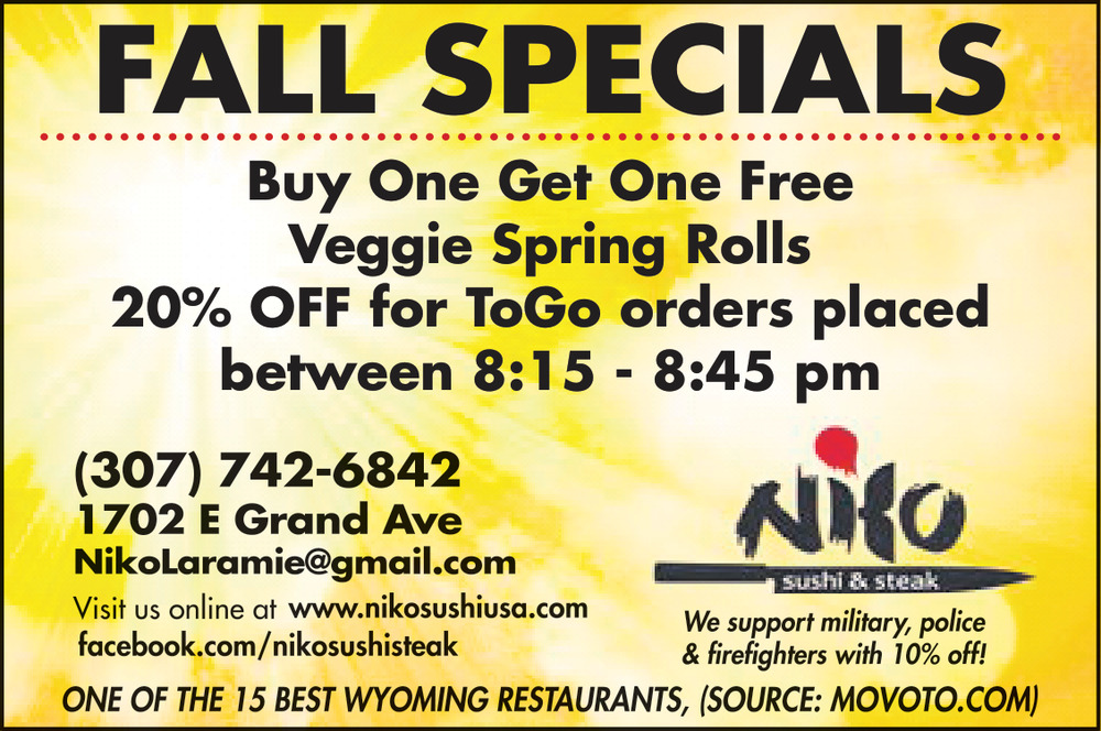 Dec 03, 2025. Niko Sushi & Steak Restaurants Ads from Laramie Boomerang