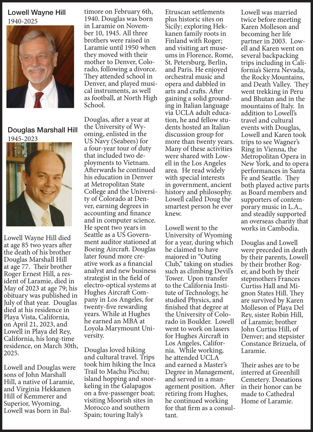 Nov 29, 2025. Lowell Wayne Hill - Douglas Marshall Hill Misc Ads from Laramie Boomerang