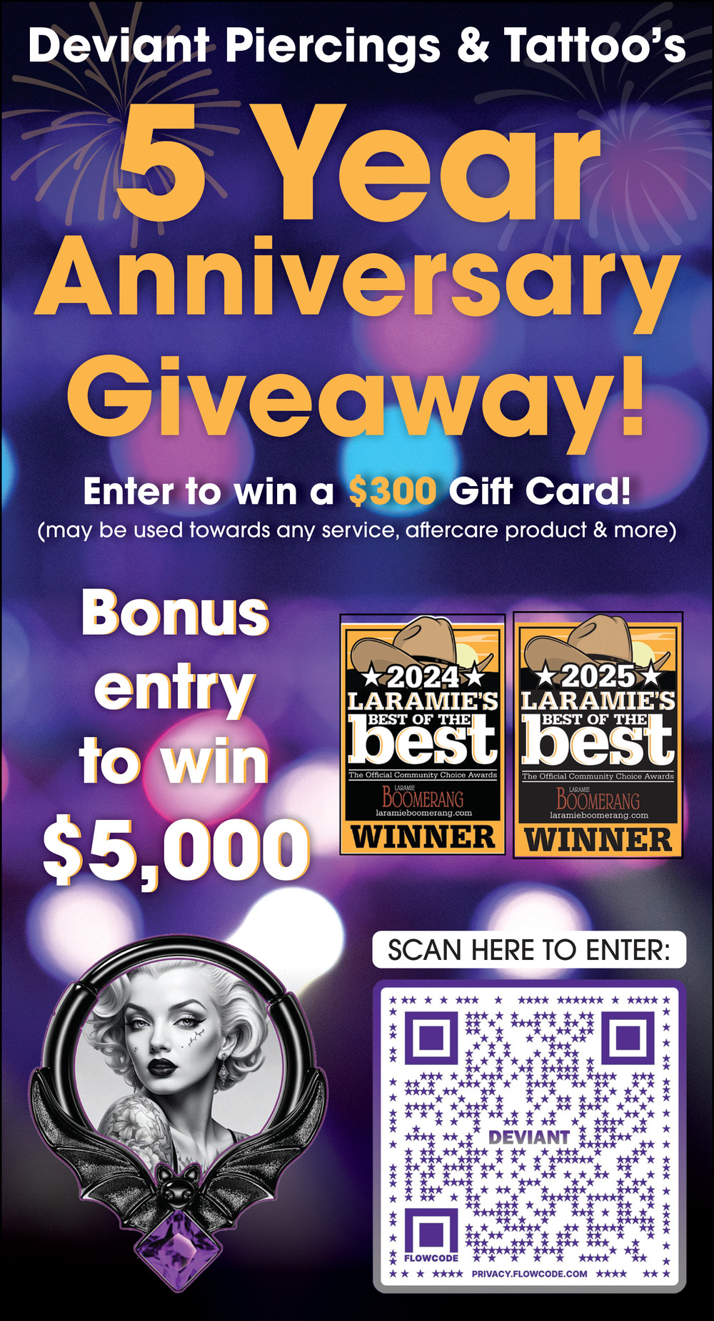 Ads for Deviant Piercings and Tattoo in Laramie, WY
