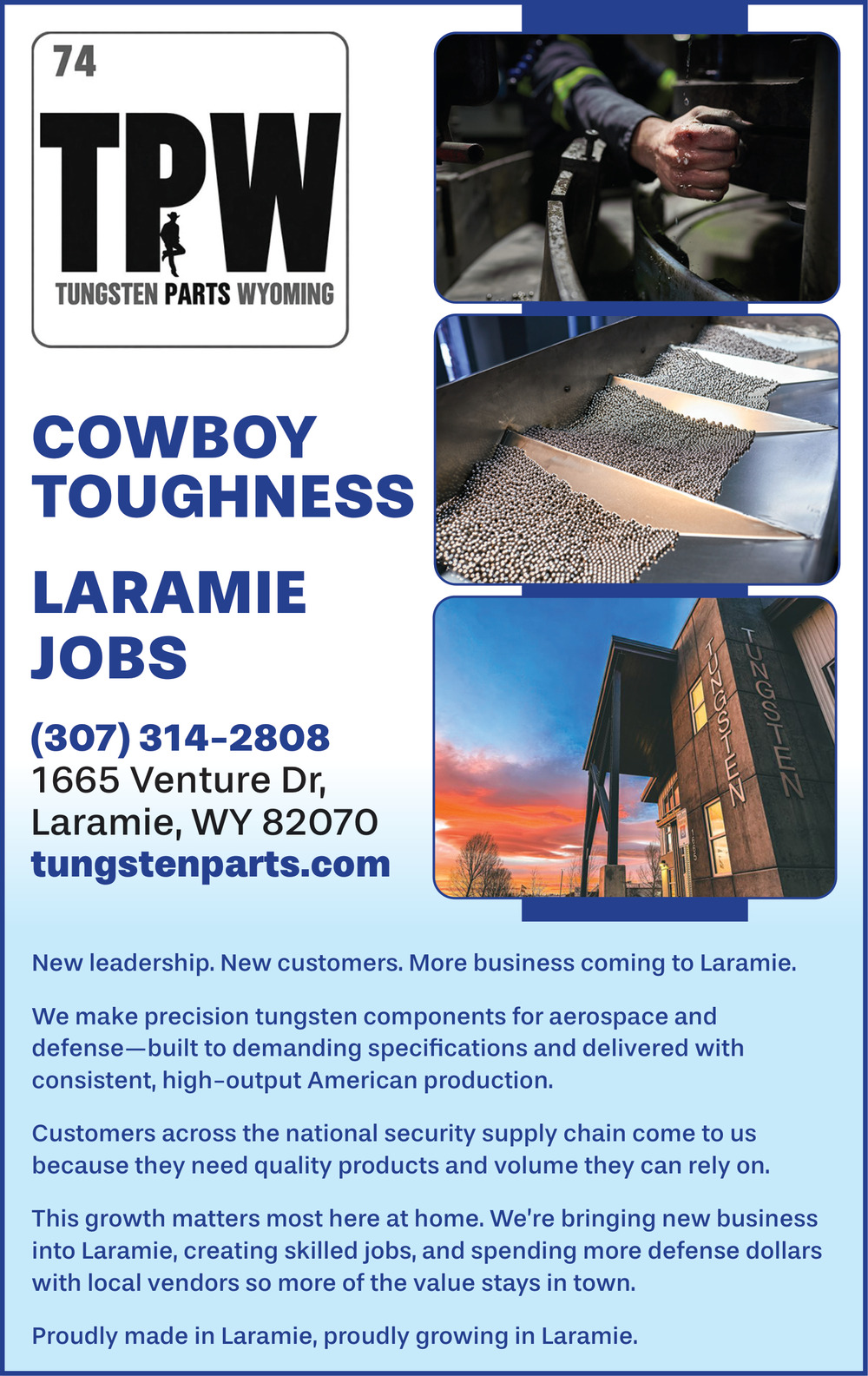 Ads for TPW Tungsten Parts Wyoming in Laramie, WY