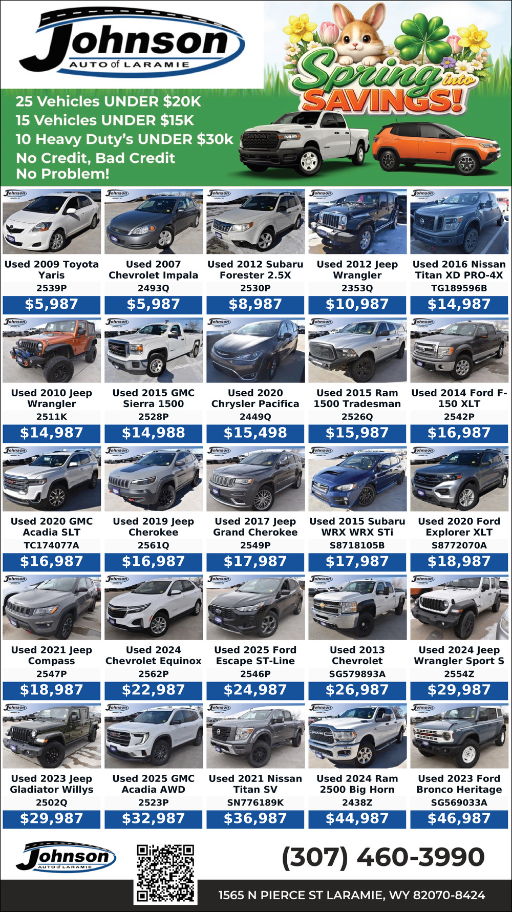 Mar 18, 2026. Johnson Auto of Laramie Auto Dealers Ads from Laramie Boomerang