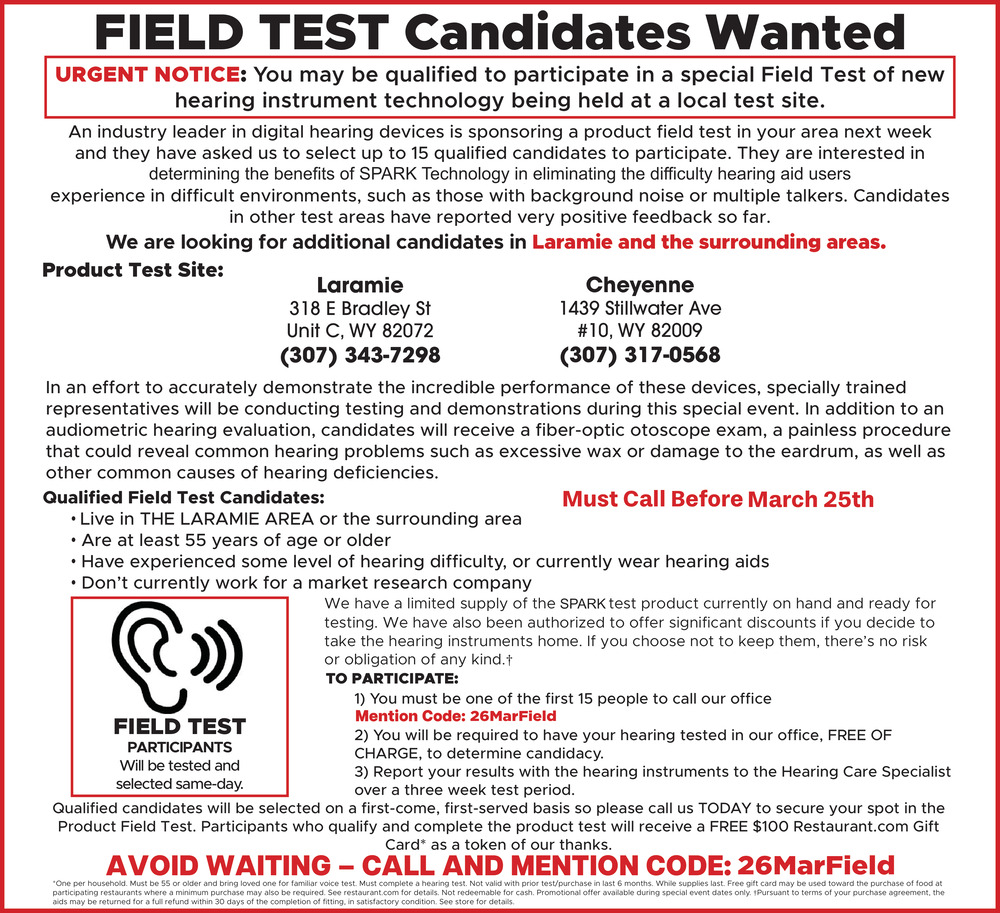 307-317-15731439 Stillwater Ave #10Cheyenne, WY 82009(Hearing Clinic)