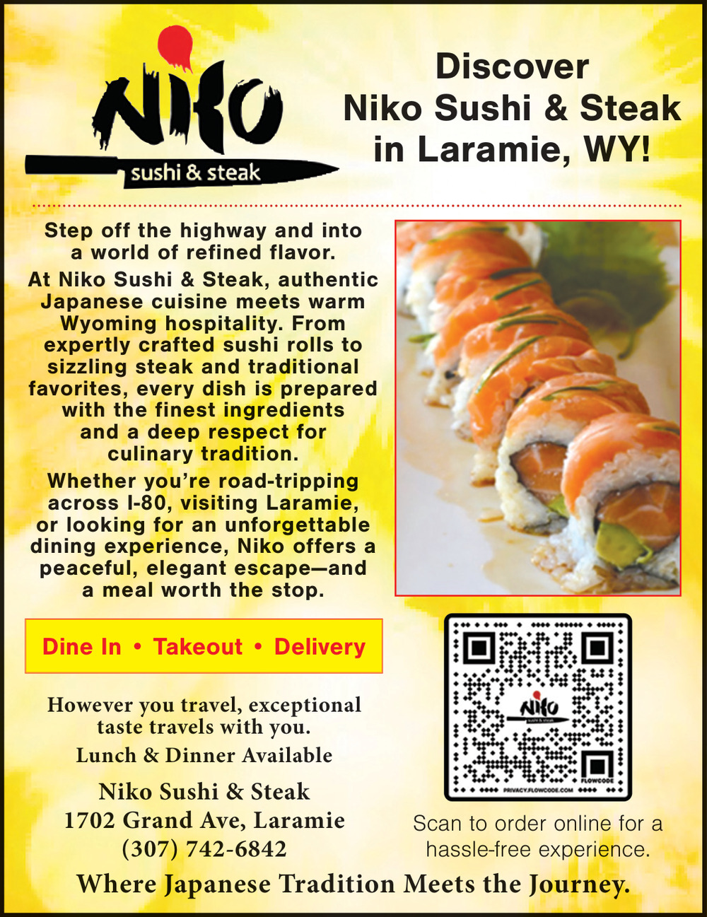 Apr 25, 2026. Niko Sushi & Steak Restaurants Ads from Laramie Boomerang